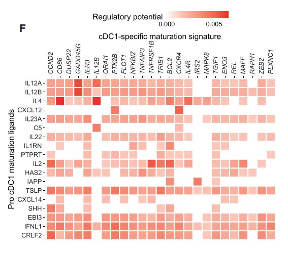 Heatmaps showing potential ligands driving the maturation of cDC1s.
